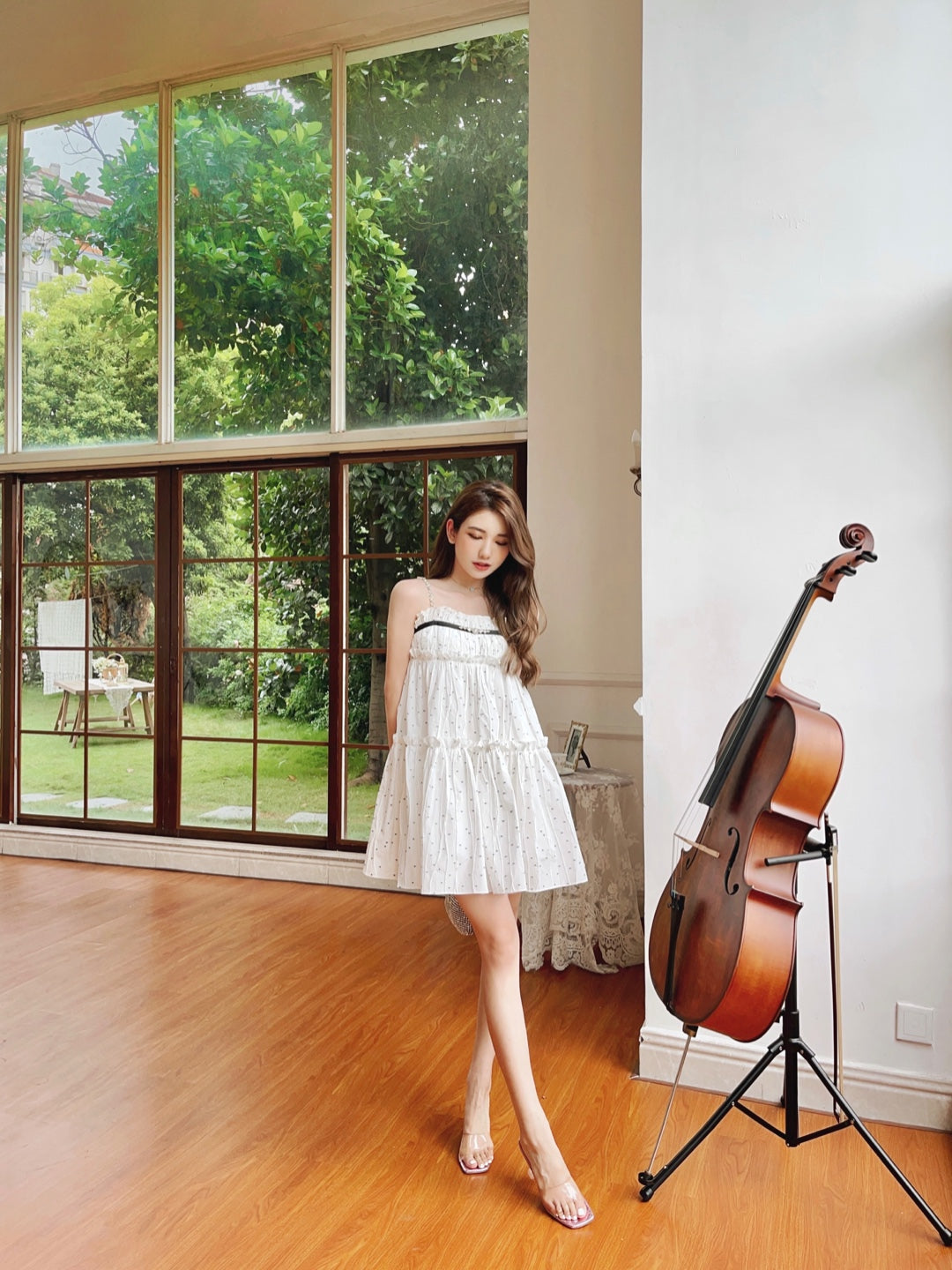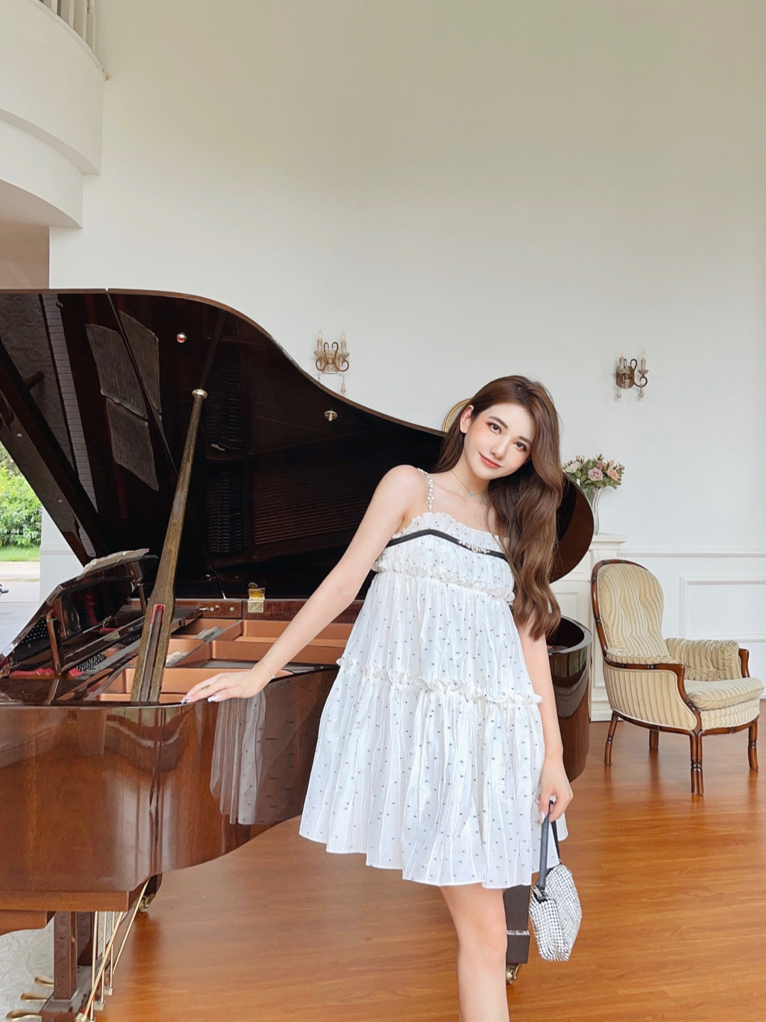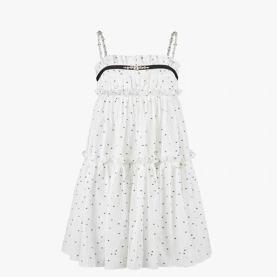 June Eleven Diamond Strap White Dotted Babydoll Dress