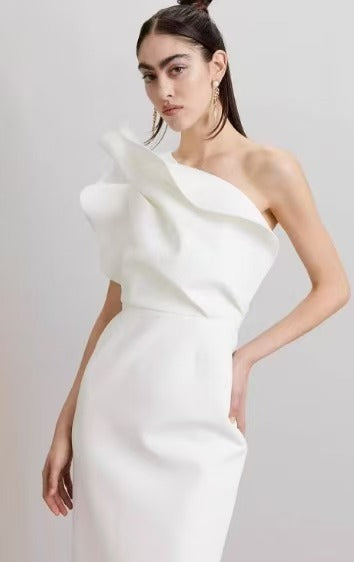 Rachel Gilbert Asymmetric Sculpted Maxi Dress White