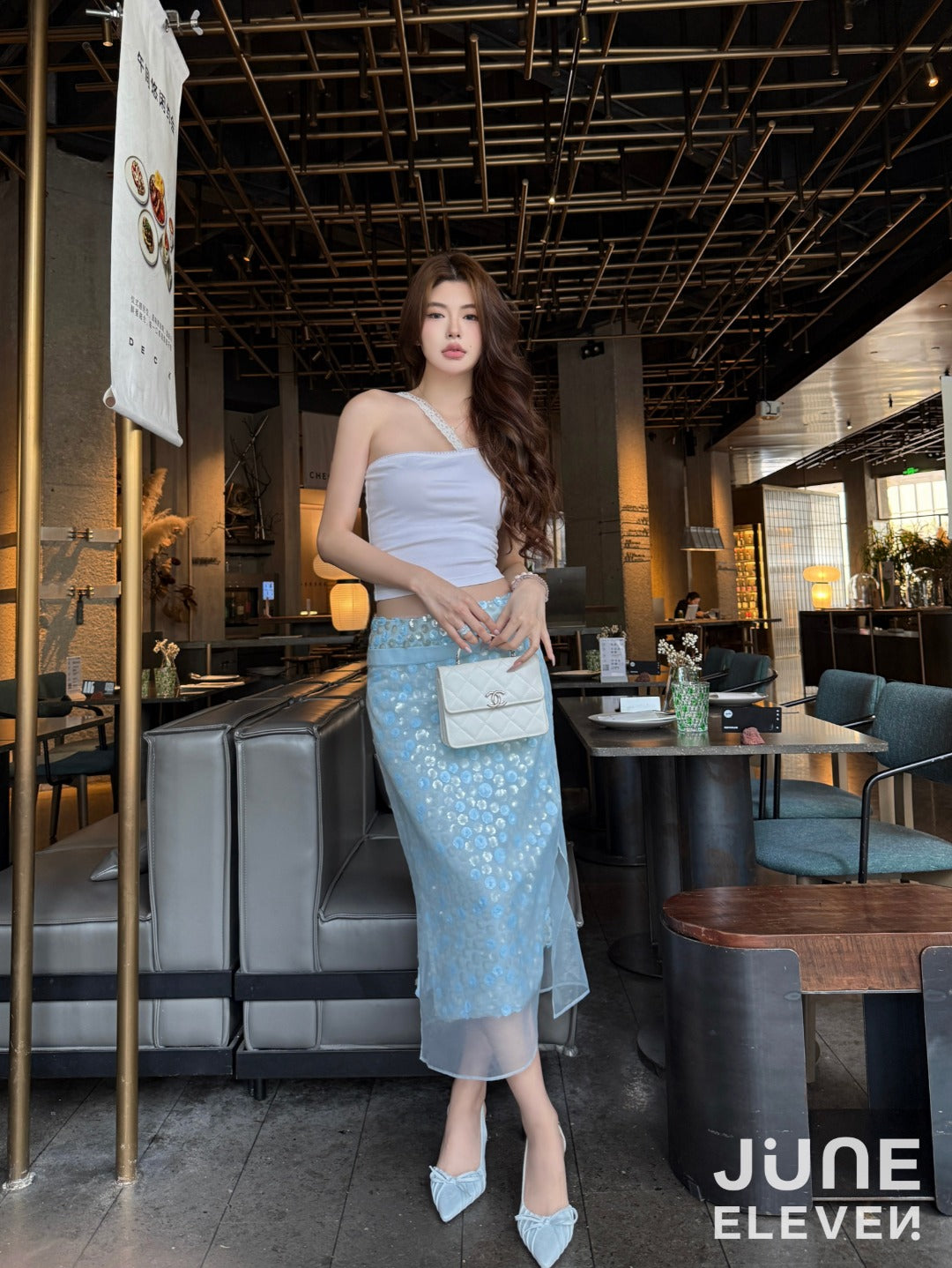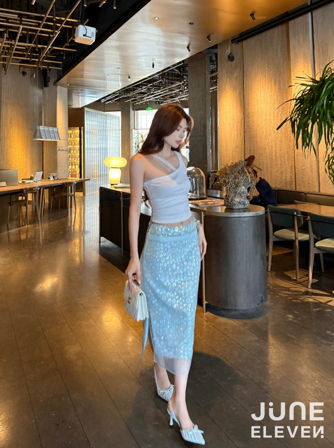 June Eleven Asymmetric Lace One-Shoulder Top White