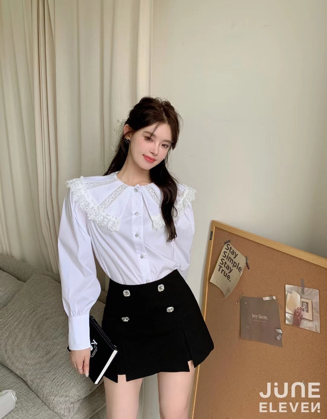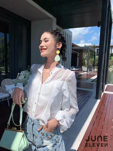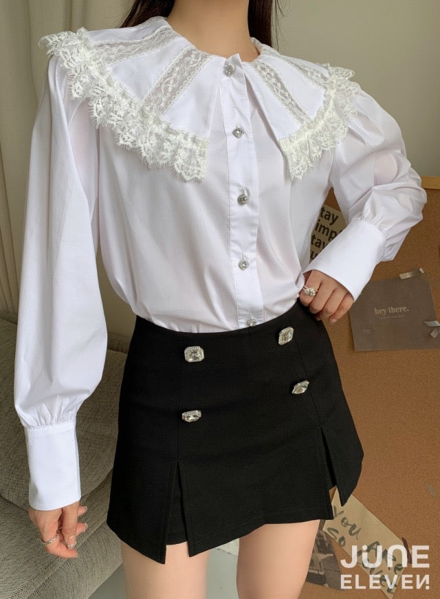June Eleven White Lace Doll Collar Shirt