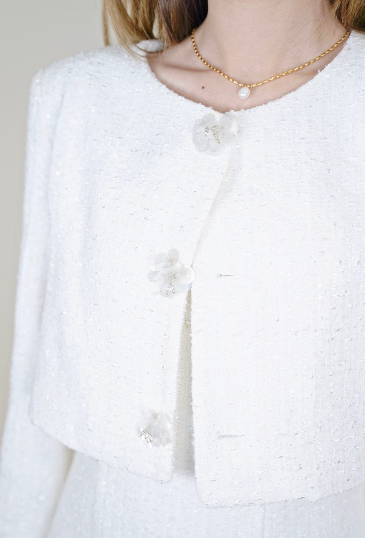 MS Pearl Blossom Tweed Jacket - White