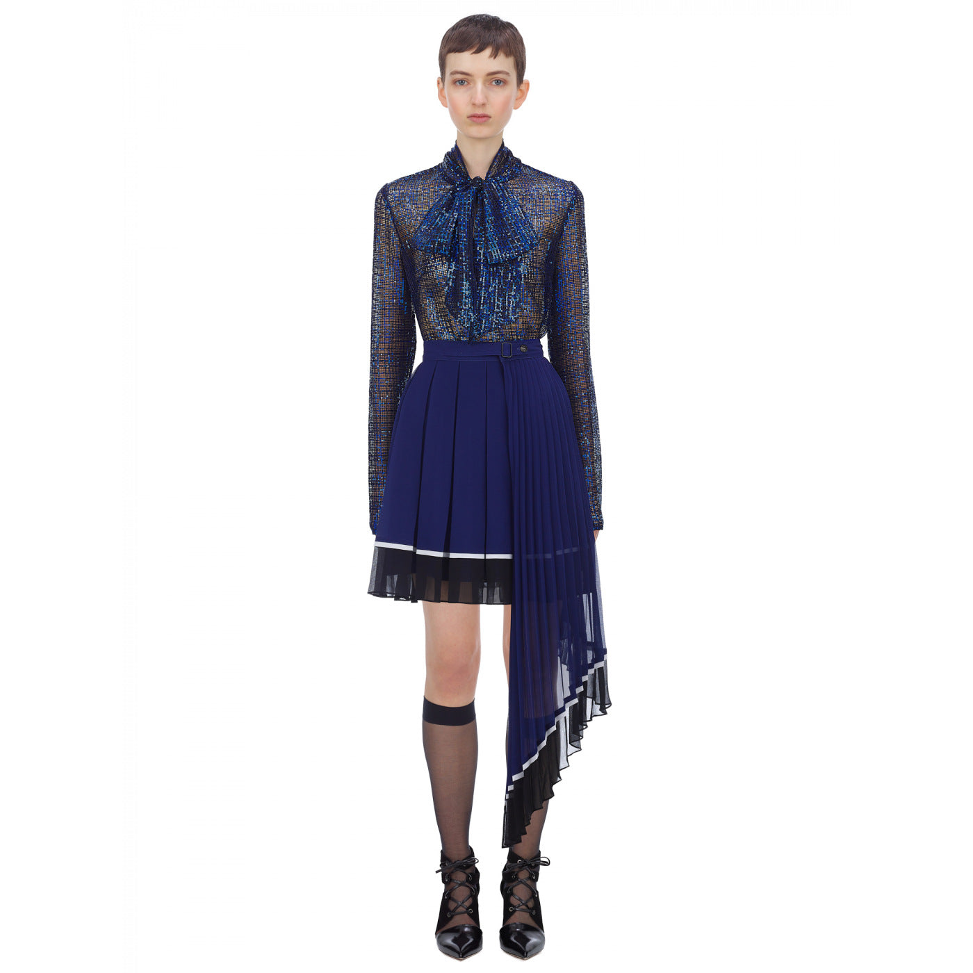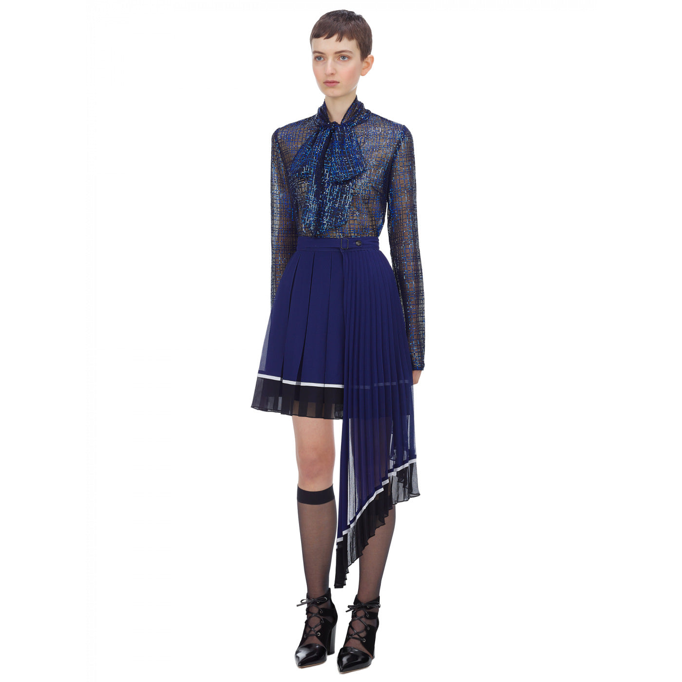 Self Portrait Check Sequin Pussybow Blouse