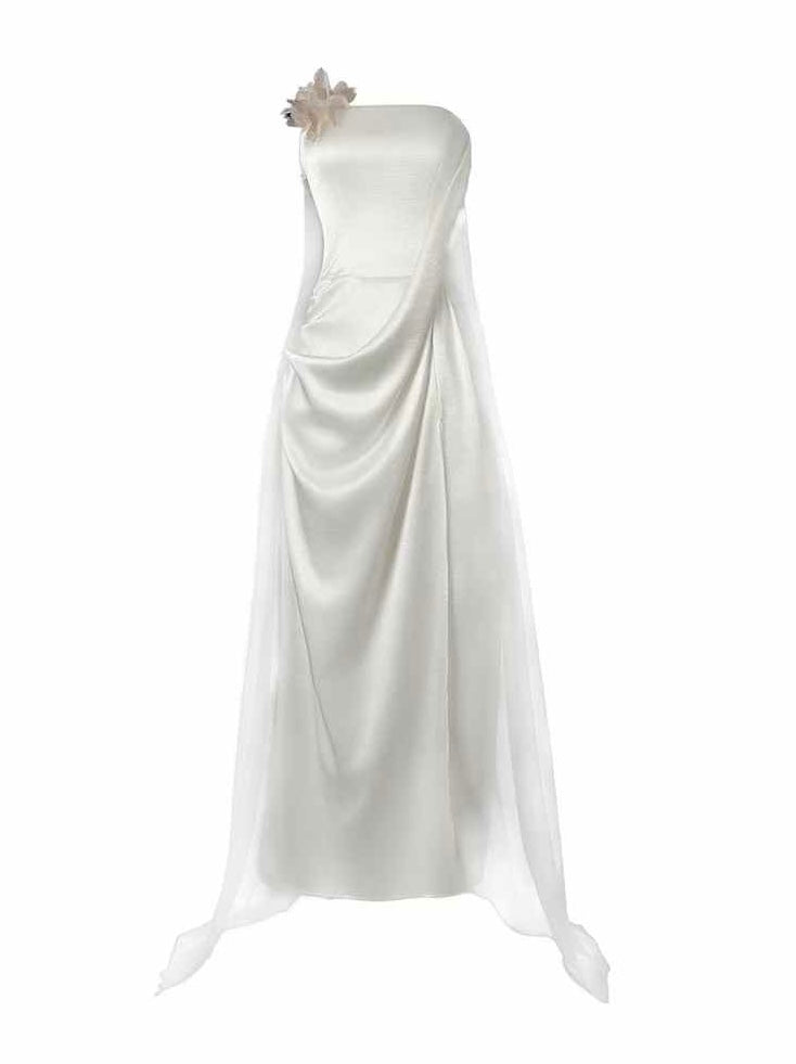 Crow Crew Draped Floral Satin Maxi Dress Ivory